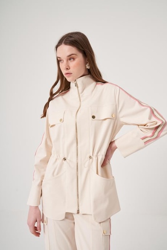 Omelya Ekru Şeritli Ceket