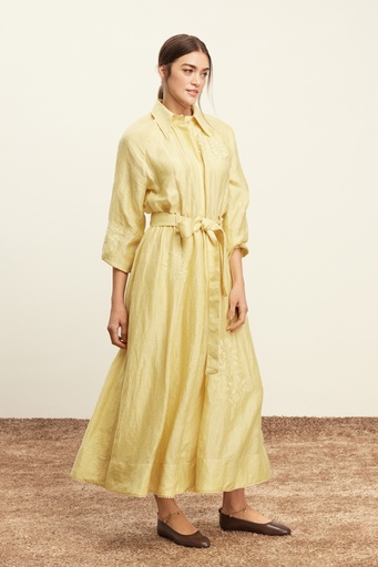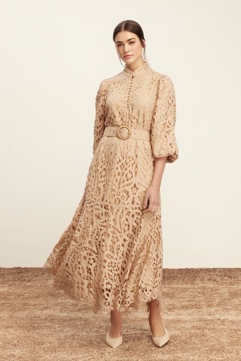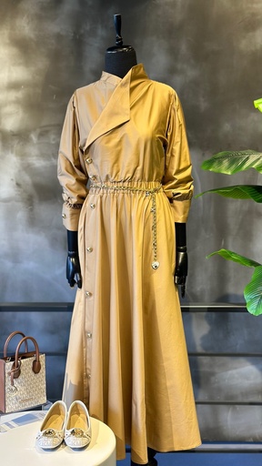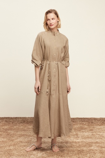 Exquise Kahve Keten Elbise