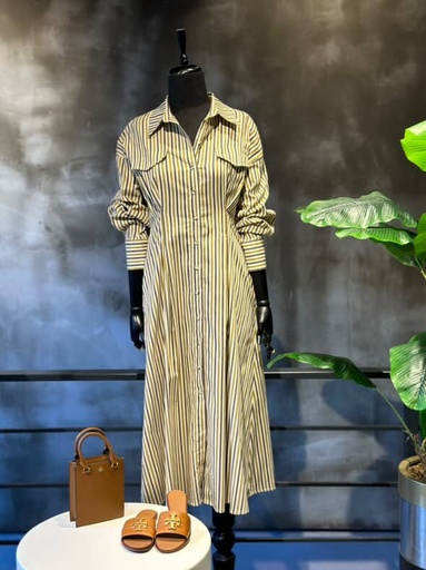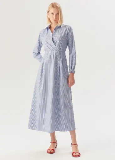Exquise Beli Lastikli Çizgili Elbise