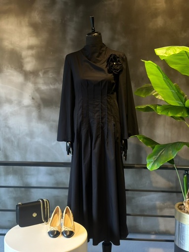Vuu Siyah Gül Detaylı Elbise