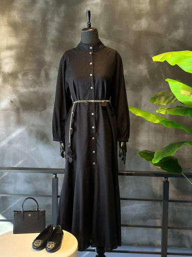 Siyah Kemer Zincir Detaylı Elbise