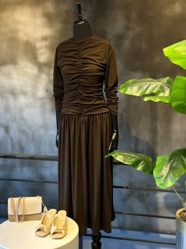 Kahverengi Büzgü Detaylı Elbise