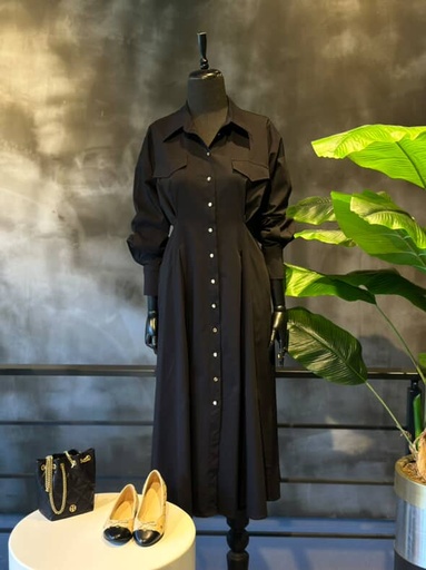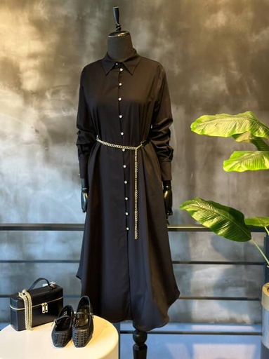 Siyah Bel Detaylı Gömlek Elbise