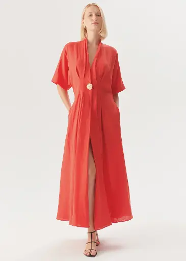 EXQUİSE KOLSUZ ÖNDEN DÜĞMELİ KUMAŞ KEMERLİ MİDİ PEMBE ELBİSE