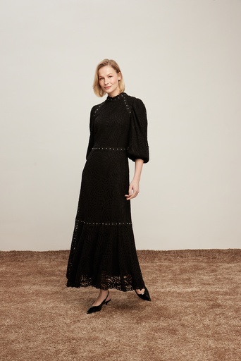 EXQUİSE Düğme Detaylı Siyah Bele Oturan A Kesim Midi Elbise