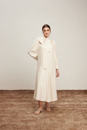 EXQUİSE İŞLEME DETAYLI ÇİZGİLİ ELBİSE MAVİ