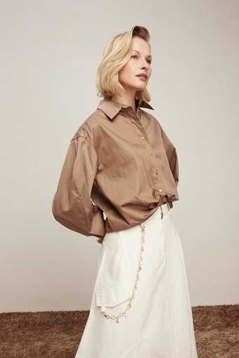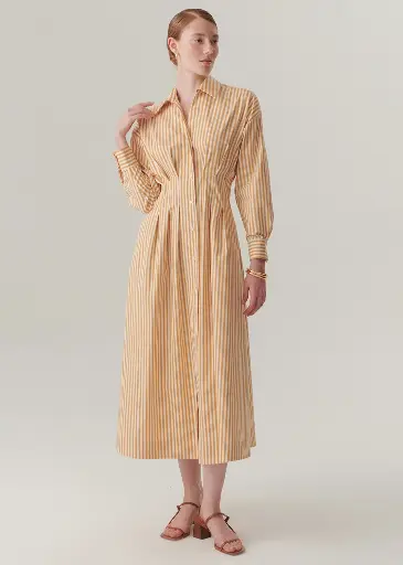 EXQUİSE BELDEN OTURTMALI ÇİZGİLİ REGULAR MİDİ GÖMLEK ELBİSE