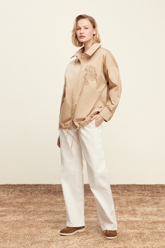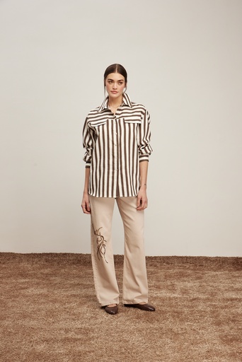 EXQUİSE ÇİÇEK İŞLEMELİ MAVİ ÇİZGİLİ REGULAR GÖMLEK
